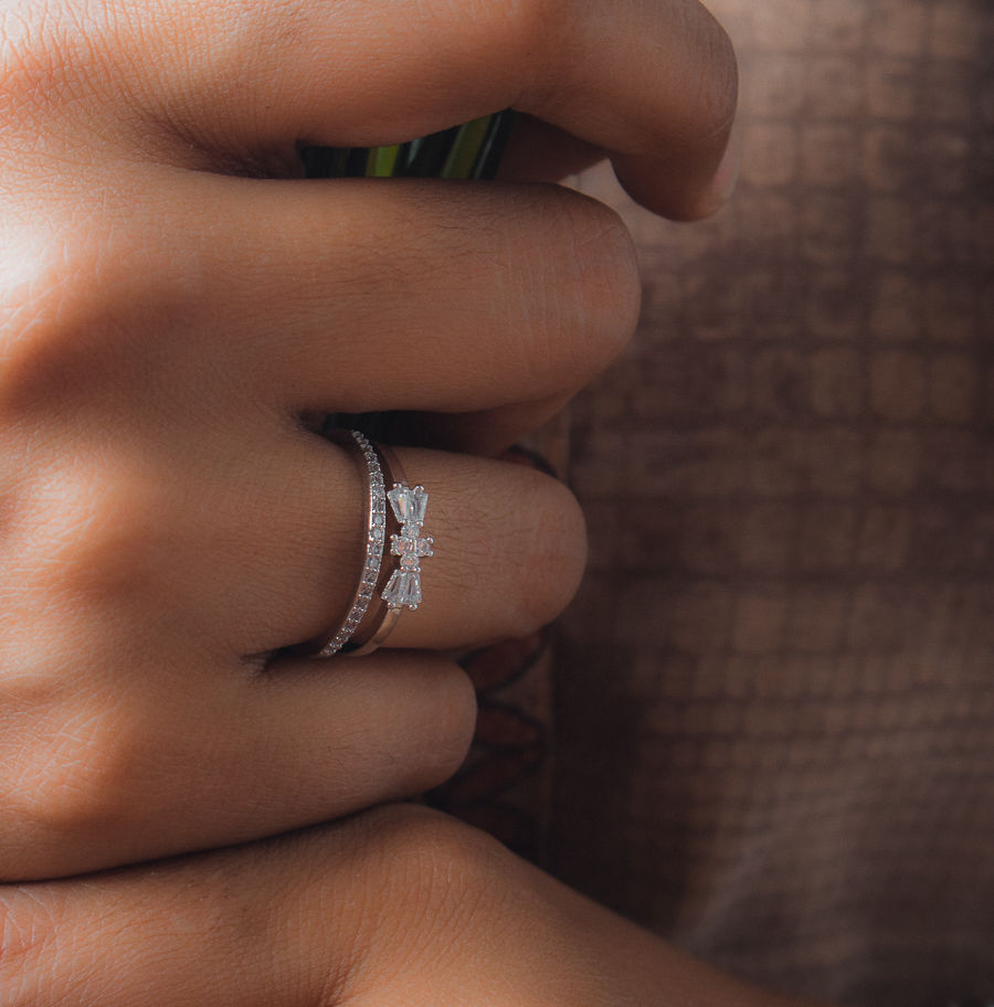 Bow Stack | Silver-Plated | Cubic Zirconia | Dainty Bridal Ring
