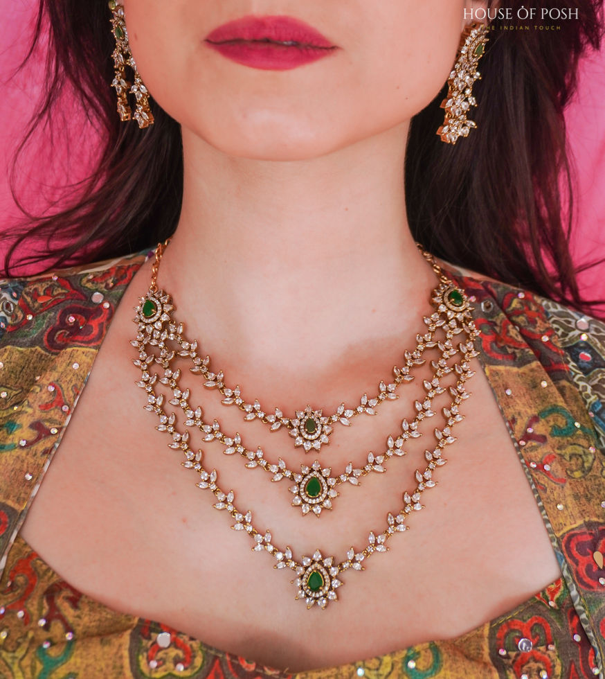 • Design: A regal multi-layered necklace with intricate detailing and floral-inspired motifs