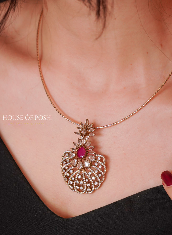 Stone: Ruby as the central gemstone, surrounded by cubic zirconia or polki diamonds