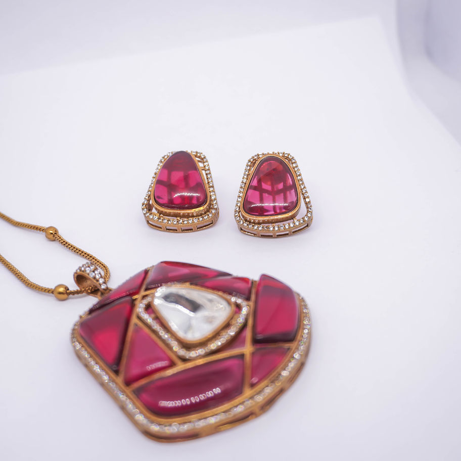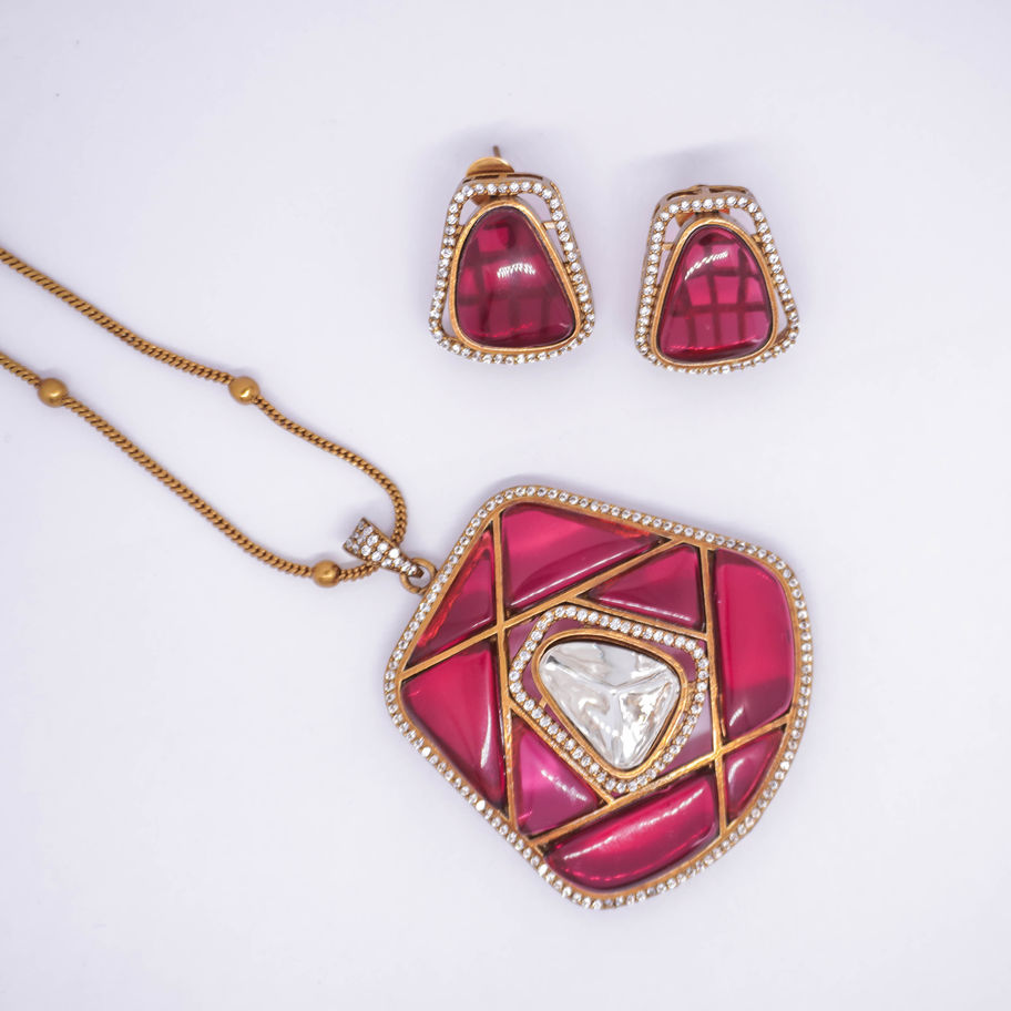 Ember Burgundy Enamel Crystal Pendant