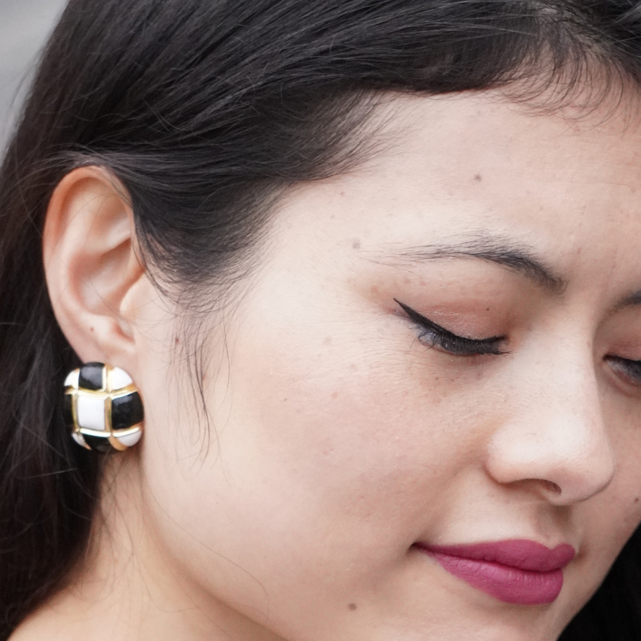 Black and White Checkerboard Gold Brooch Earrings FEG- 120 001