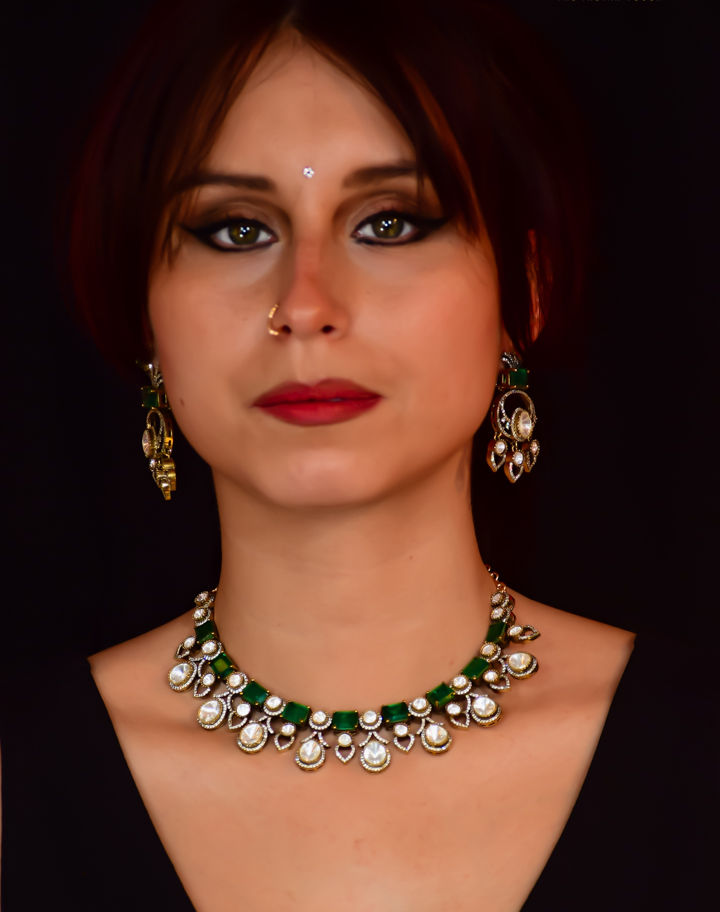 Emerald Kundan Choker Necklace Set
