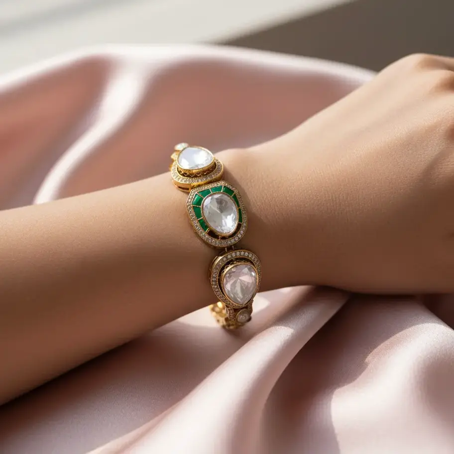 Gold-Tone Bracelet with White and Green Gemstones