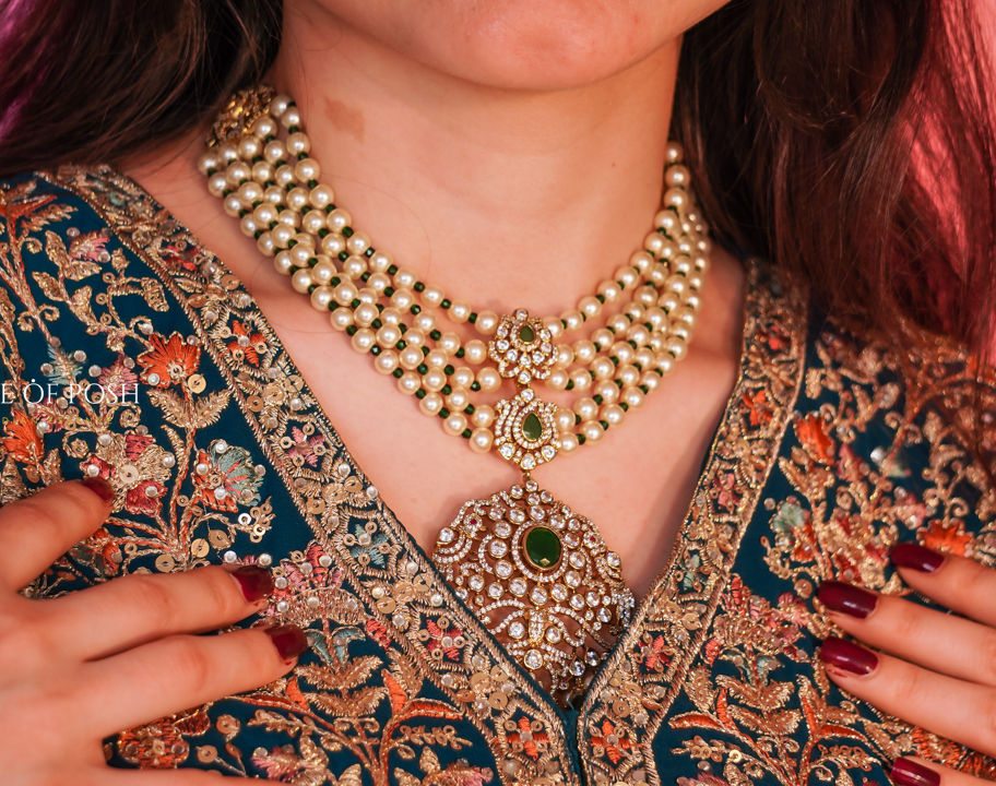 Stone: Pearls, emerald accents, and cubic zirconia embellishments