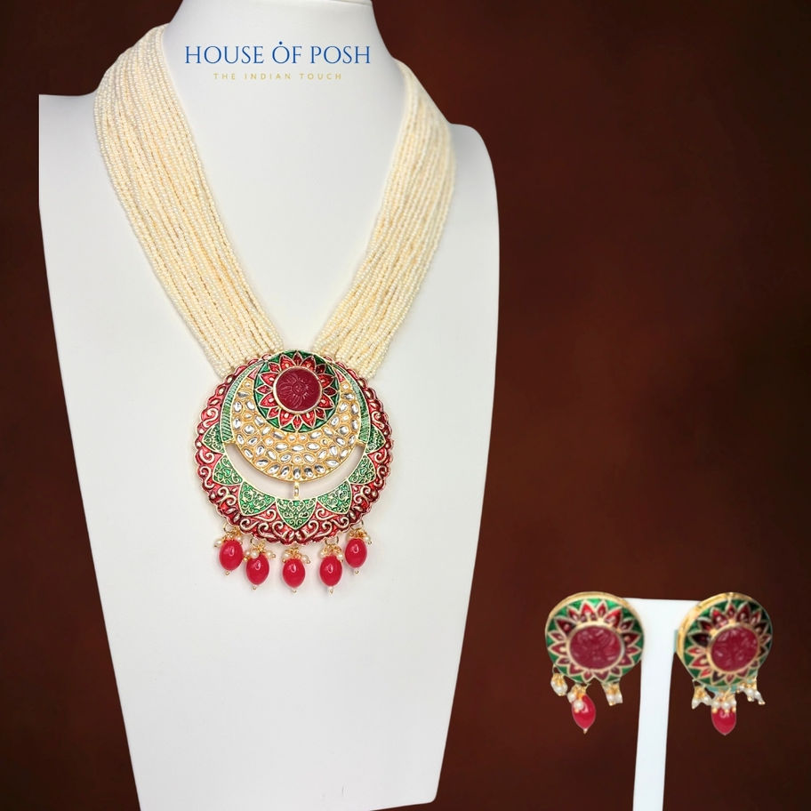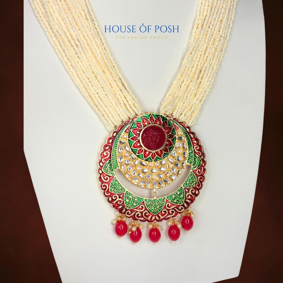 Layered Pearl Necklace with Meenakari Pendan JML-129-007