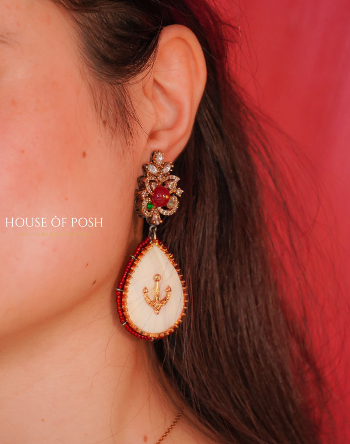 Set sail for style with these exquisite Indian earrings, a fusion of nautical charm and elegant design. Featuring a delicate shell-shaped pendant adorned with an anchor charm and framed by shimmering beads, these earrings are a celebration of rich cultural heritage and unparalleled artistry. Whether you're dressing up for a special occasion or adding a touch of bohemian flair to your everyday look, these earrings are sure to make a statement.